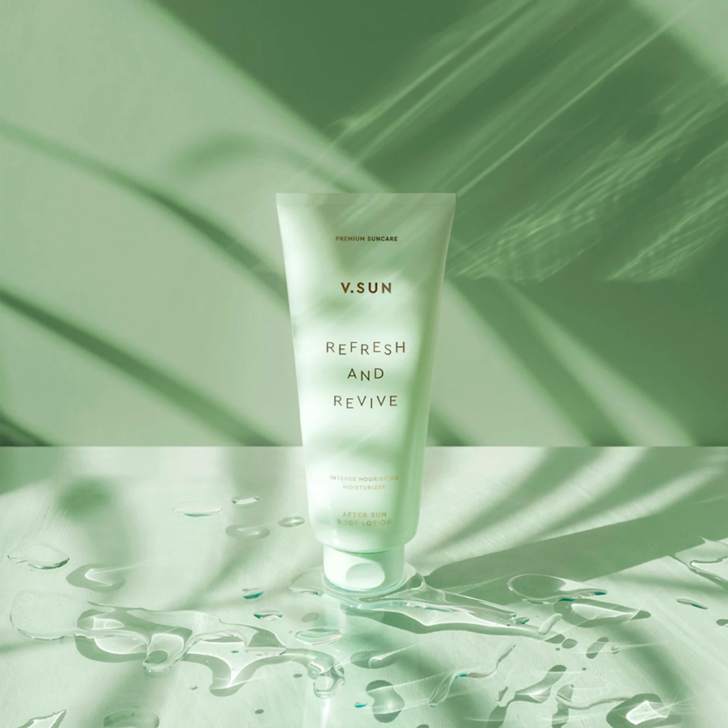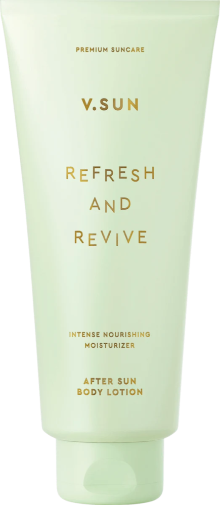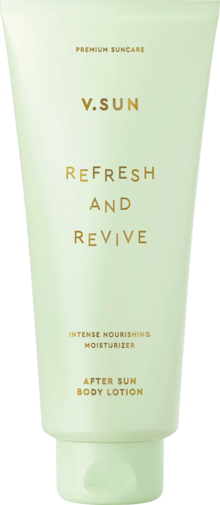 Die Premium After Sun Lotion von V.SUN für den Körper enthält Ectoin, Aloe vera und Panthenol